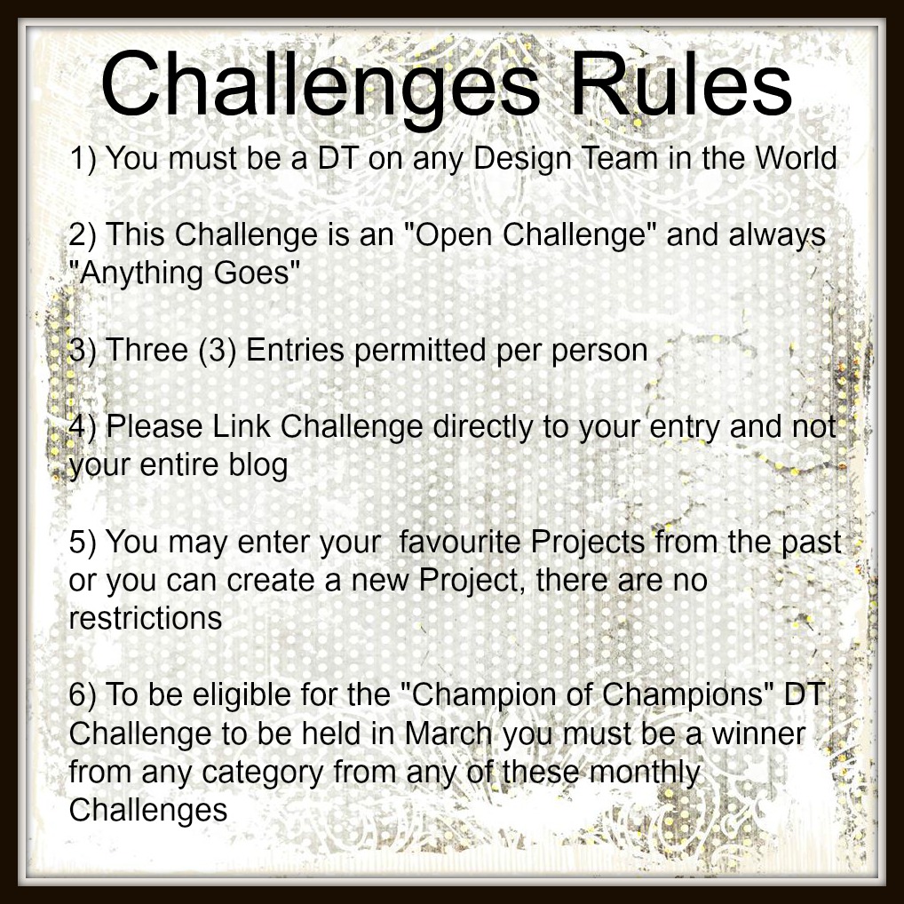 Don't forget, all winners from these monthly challenges are eligible to enter the "Champion of Champions" DT Challenge to be held in March 2016.